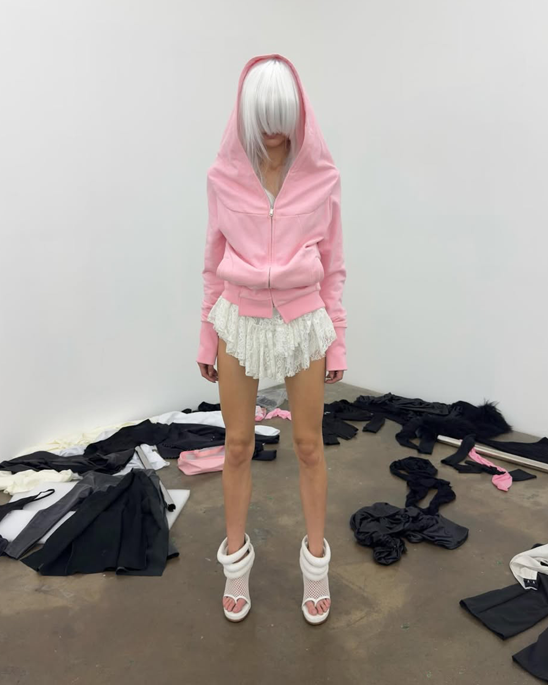 ・ワイドシルエットのジップアップフーディー