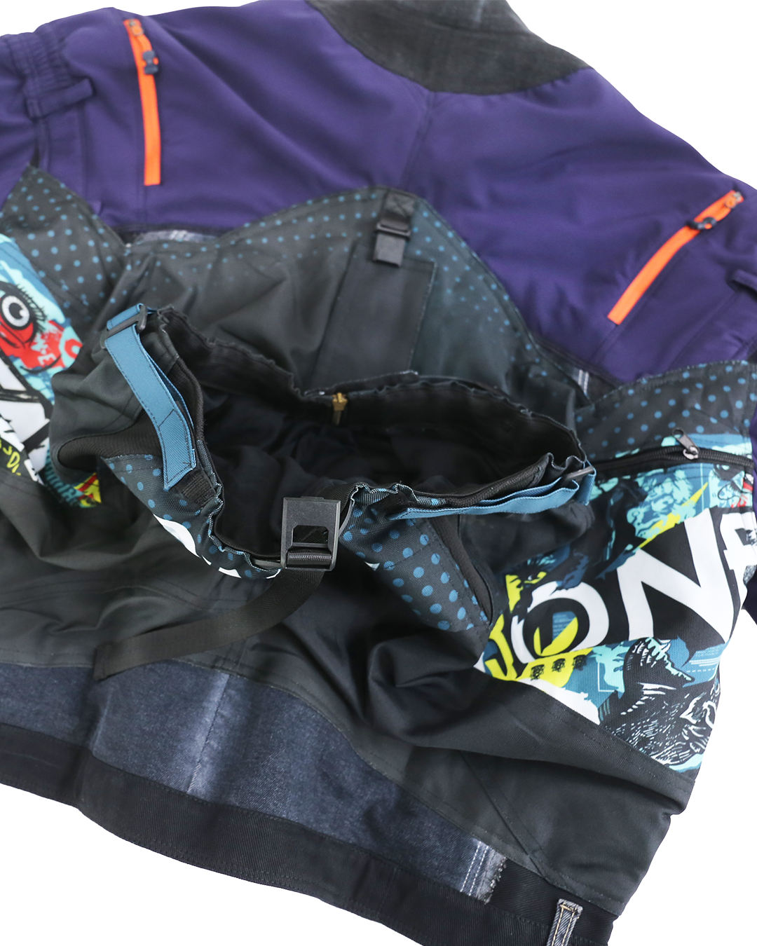・Large buckled back pocket with integrated pants