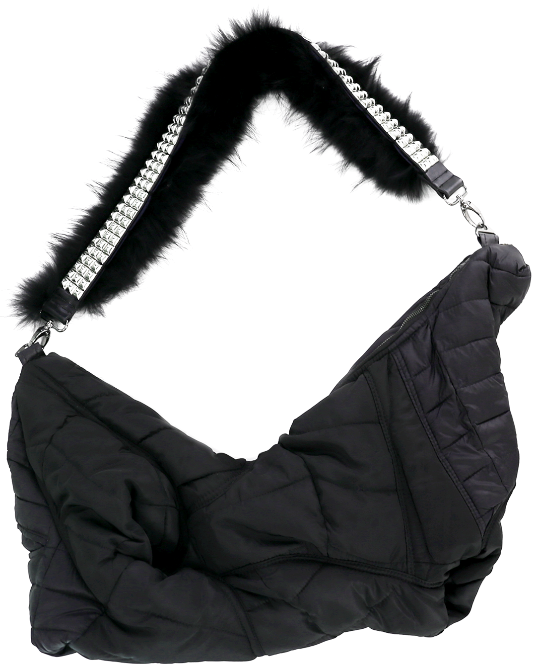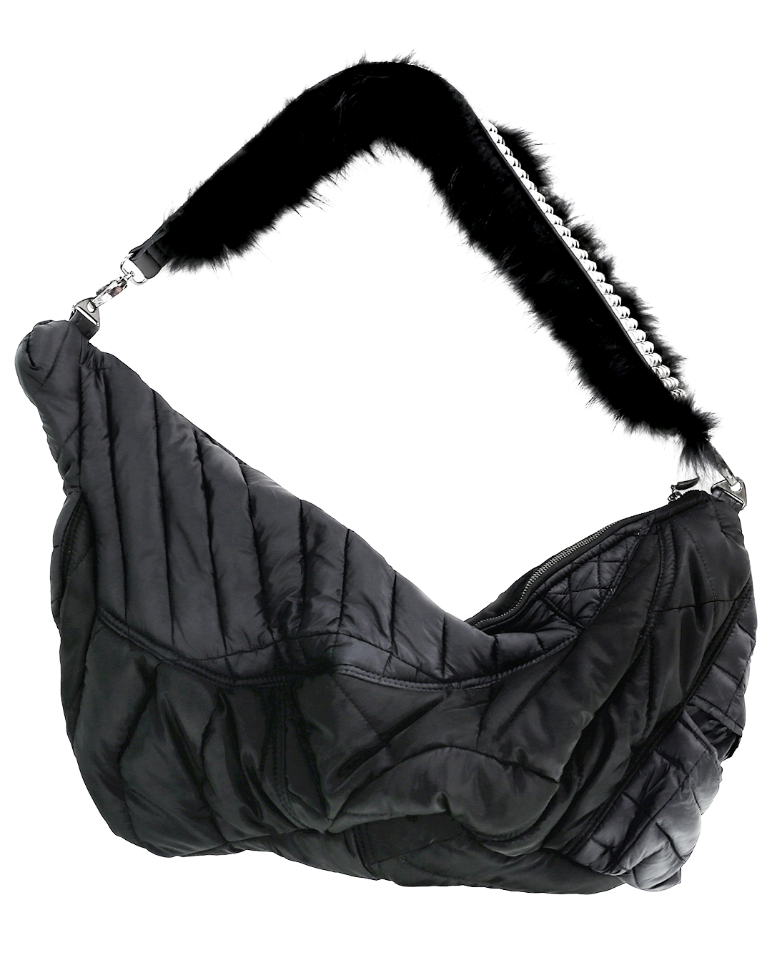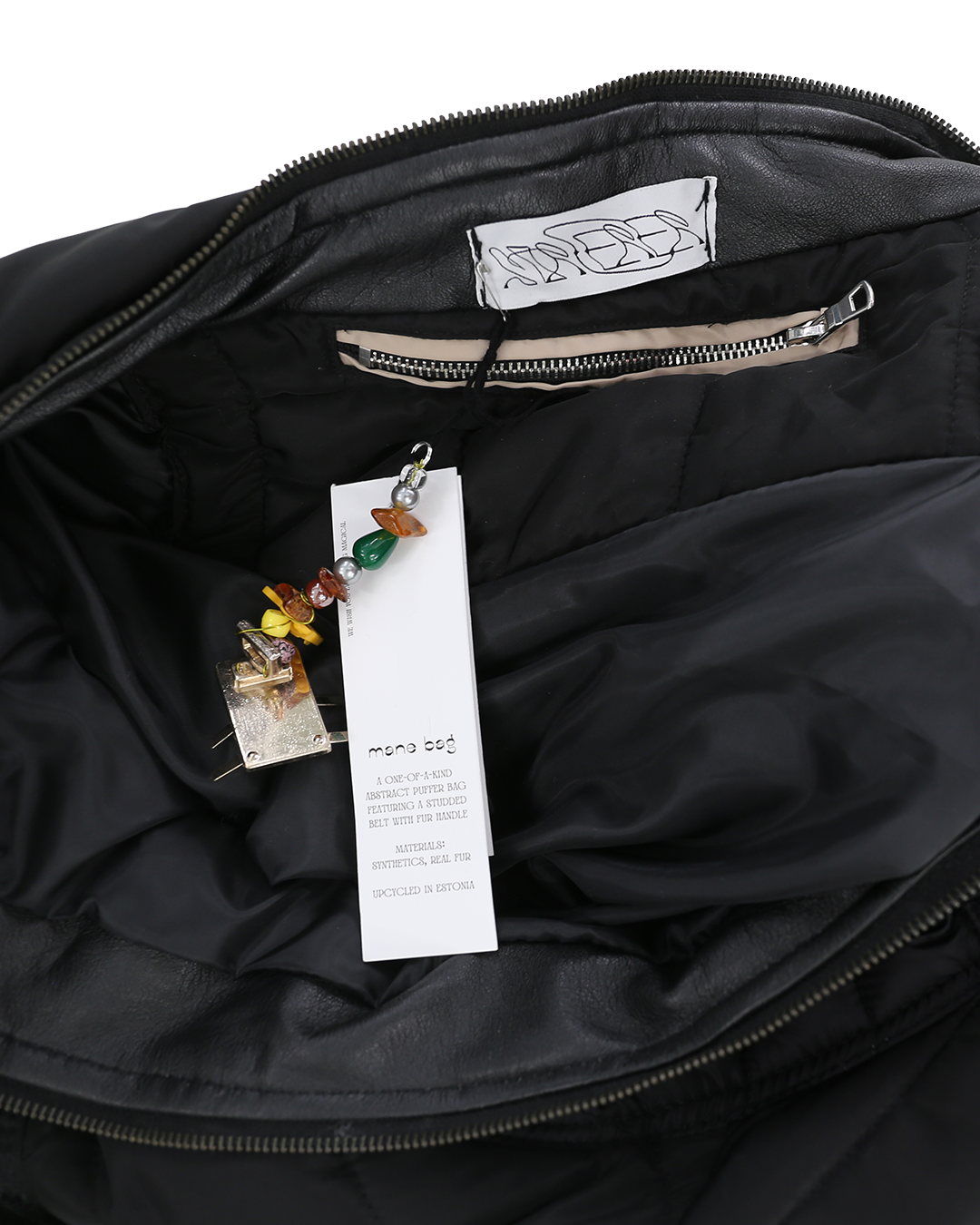 ・Upcycled bag featuring a design reminiscent of warped space-time