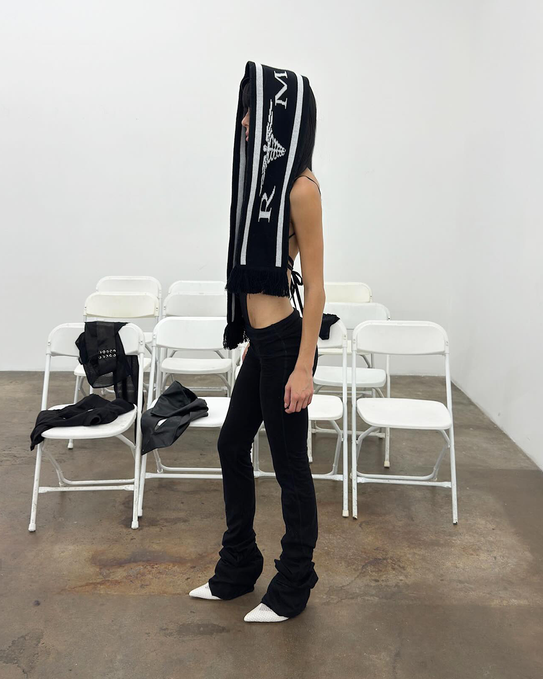 ・Knit scarf with fringe on both ends